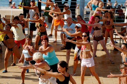 Für sportliche Menschen bietet sich eine fast endlose Liste von Aktivitäten, angefangen bei den üblichen wie Beachvolleyball, Badminton, Fußball bis zu exotische Sportarten wie Blind- Volleyball (das Netz ist dabei abgedeckt), Graffiti-Kursen und Karate-Workshops.