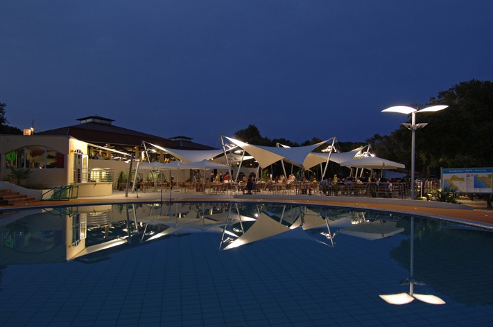 Das Zentrum des Campingplatzes bildet eine Pool- und Relaxlandschaft, die fast direkt am Strand gelegen ist. Hier wird Erholung und Unterhaltung für die ganze Familie geboten. Für diejenigen, die einfach nur die Sonne und das Meer genießen wollen, bieten Kiesel-, Fels- und auch Sandstrände ausreichend Platz für einen entspannten Tag.