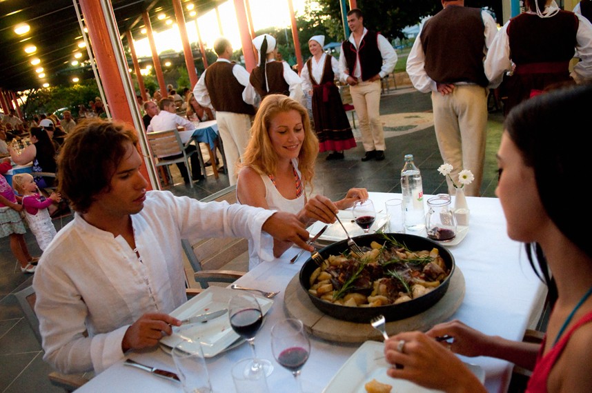 Was das kulinarische Angebot angeht, so gibt es ein Restaurant, ein Fischrestaurant und eine Snack-Bar. Am Abend kann man einen Trink in dem zum Campingplatz gehörenden Pub nehmen oder in die Aperitif-Bar gehen.