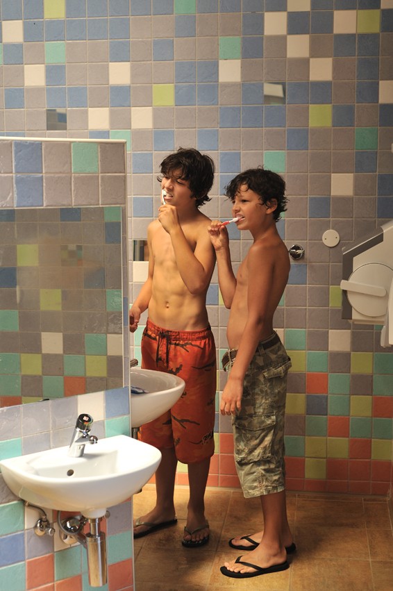 Neun Sanitärgebäude sind gleichmäßig über den gesamten Campingplatz verteilt und in allen befinden sich Warmwasser-Duschen, Toiletten und Becken zum Geschirr spülen. Einige dieser Gebäude sind behindertengerecht ausgestattet und es gibt dort auch Waschmaschinen, Kindertoiletten und Wickelräume.